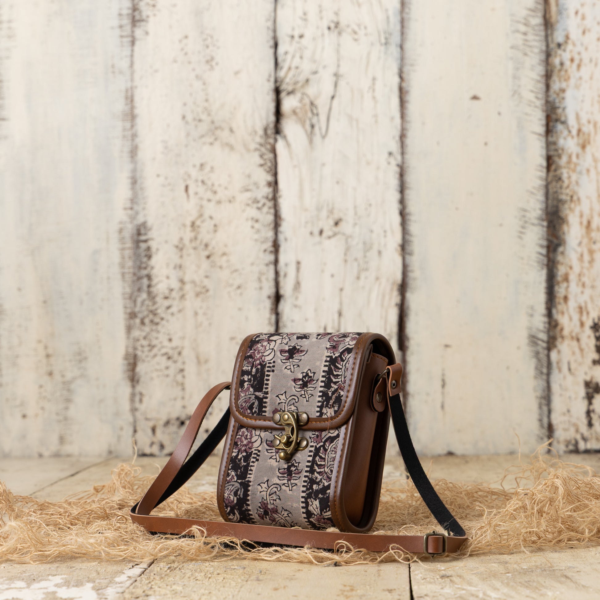 A perfect blend of traditional Indian patterns and contemporary style, this structured sling bag is crafted in rich Kalamkari fabric