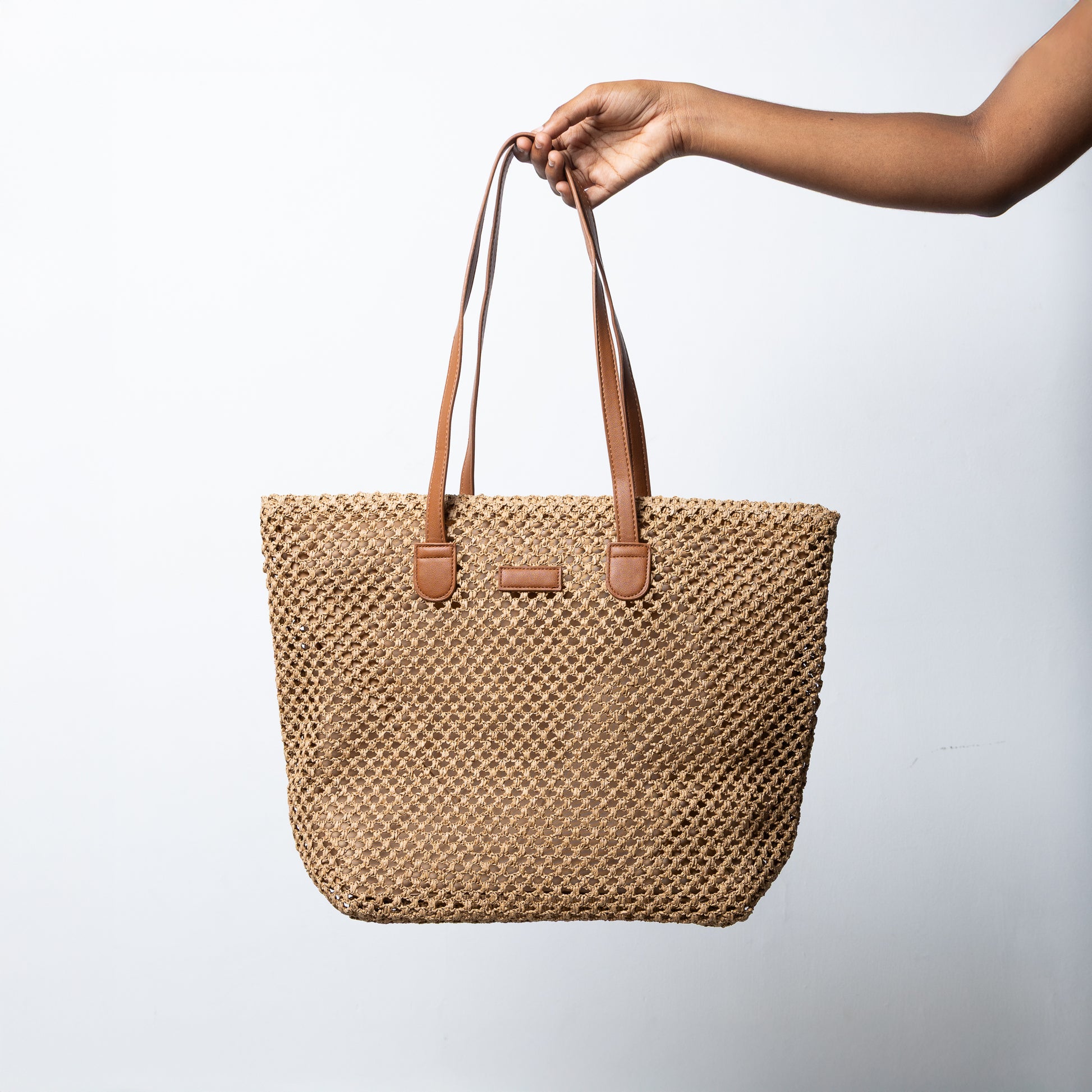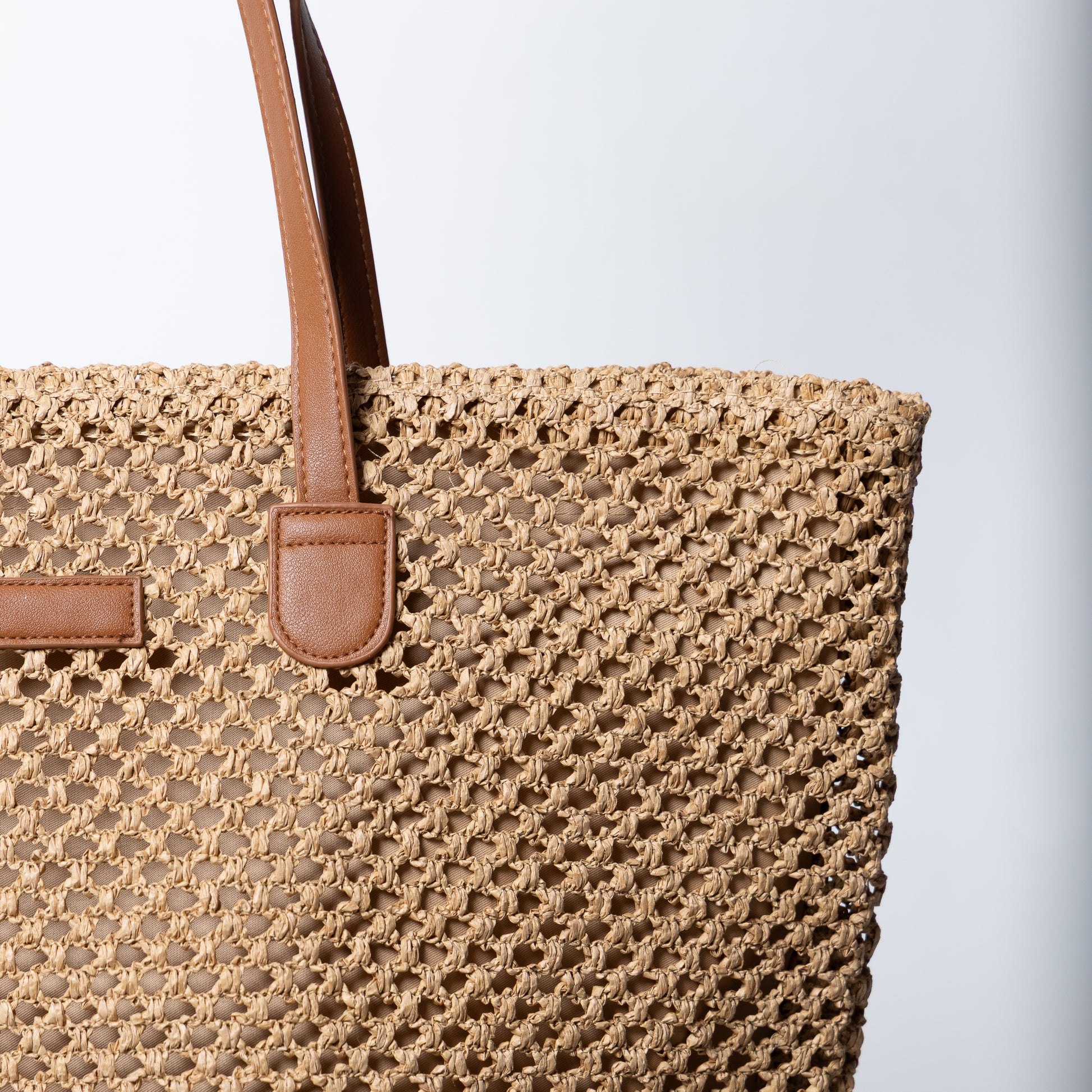 A spacious tote crafted with a beautifully woven natural texture that highlights artisanal craftsmanship. Light yet sturdy, this bag is designed for effortless everyday use. The airy weave adds an earthy charm while the sleek tan handles bring a refined finish, making it perfect for work, shopping, or casual outings. Stylish, practical, and timeless in appeal.