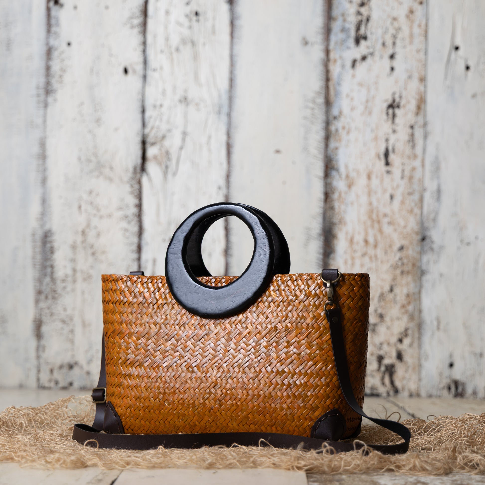 A Simple and Classy woven grass bag in hues of classic brown which fits all tastes and all styles.